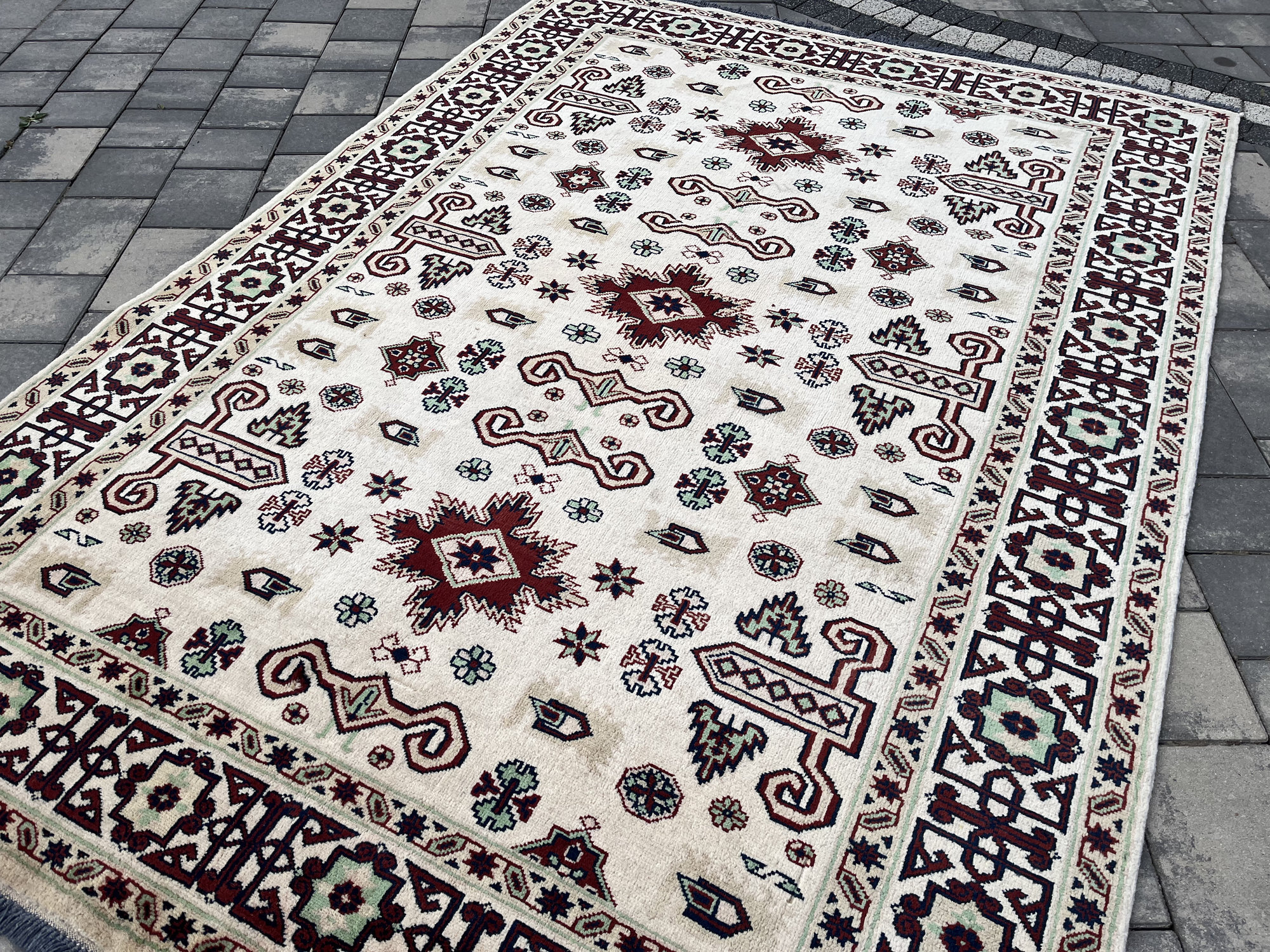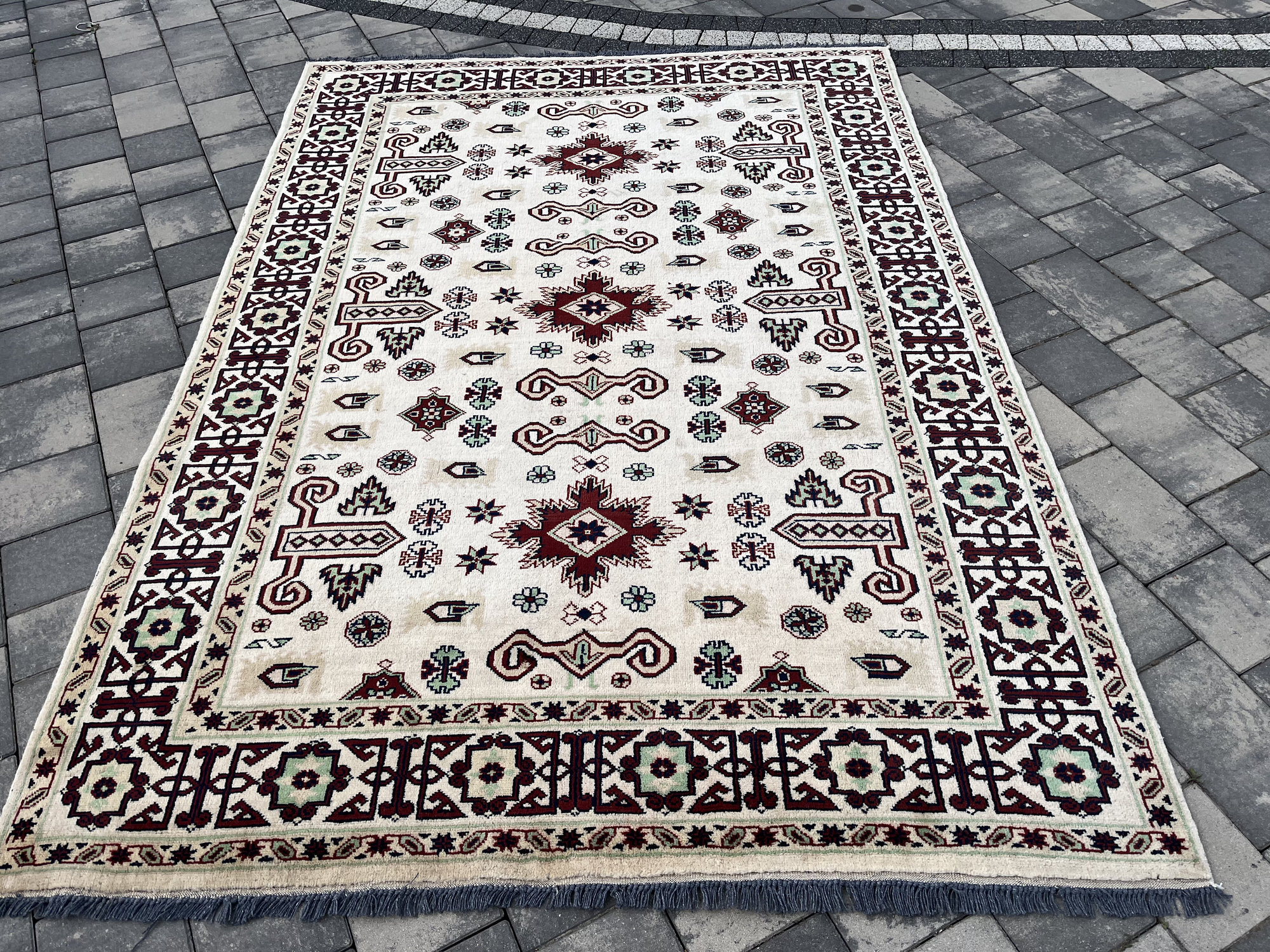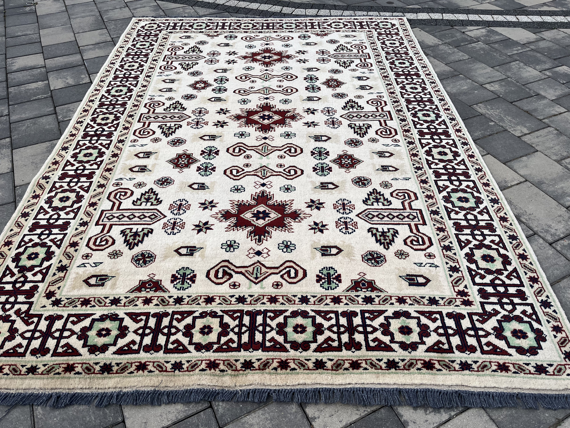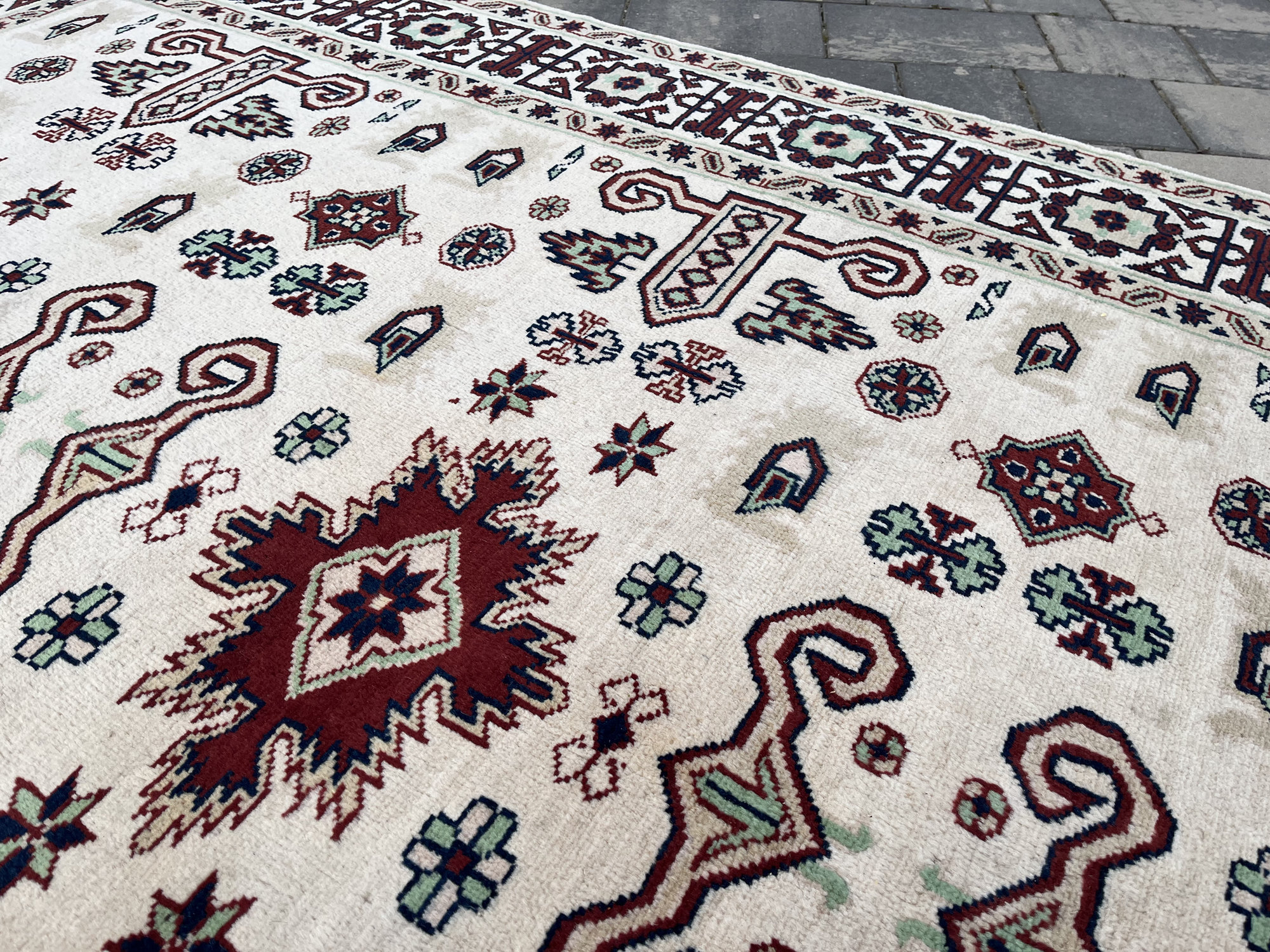 Oferuję Państwu unikatowy, luksusowy dywan Afghan Kazak, ręcznie tkany przez mistrzów rzemiosła.