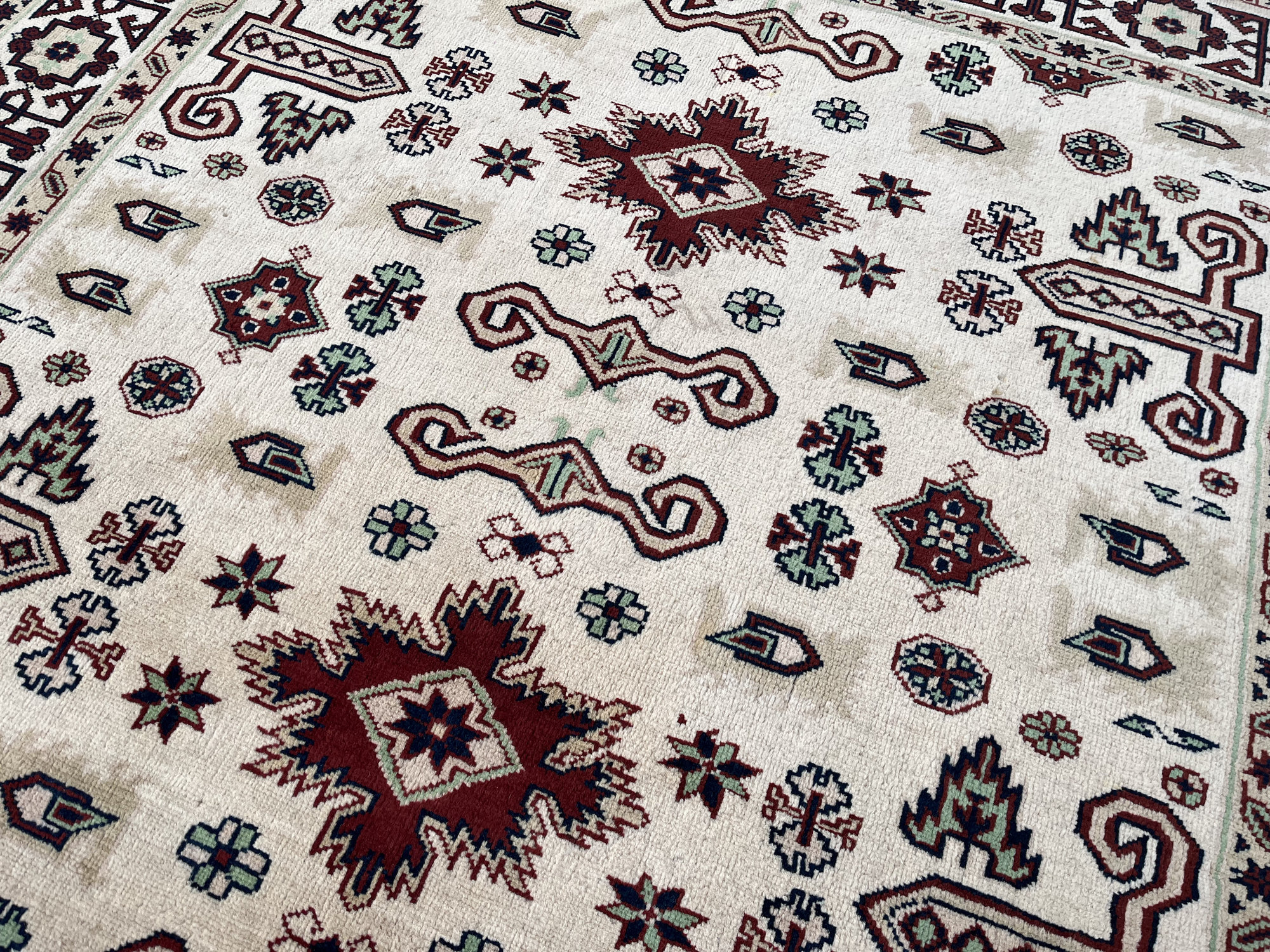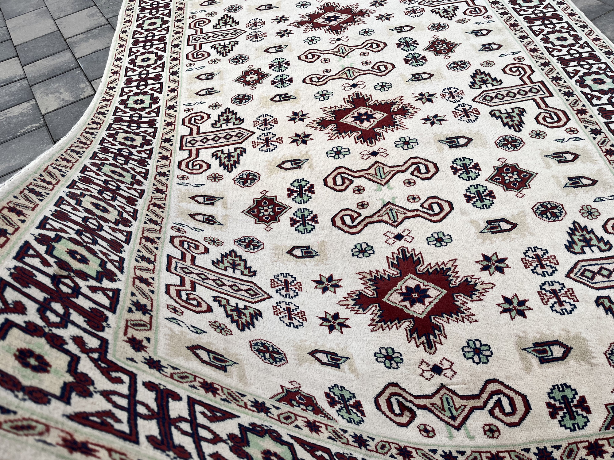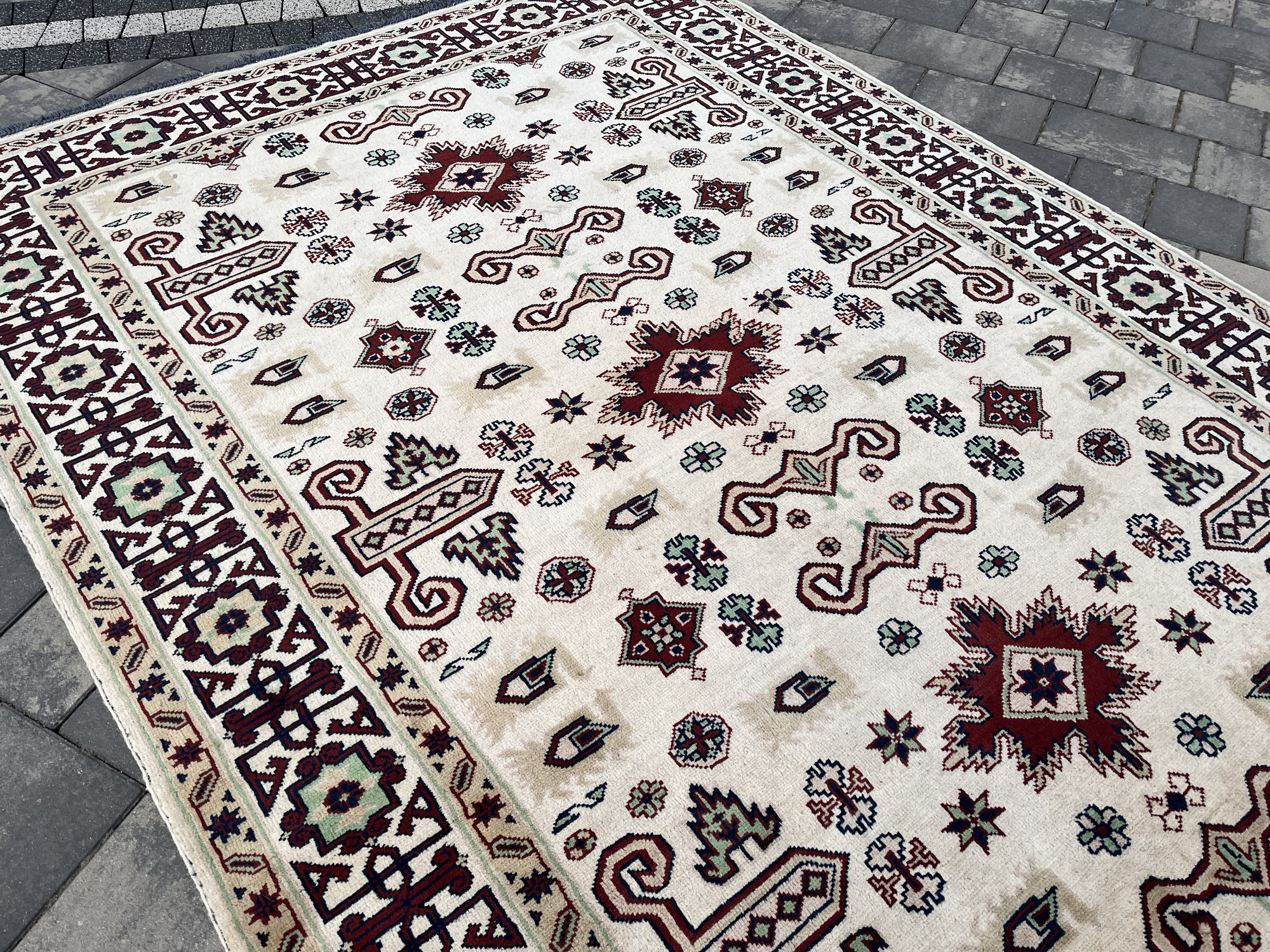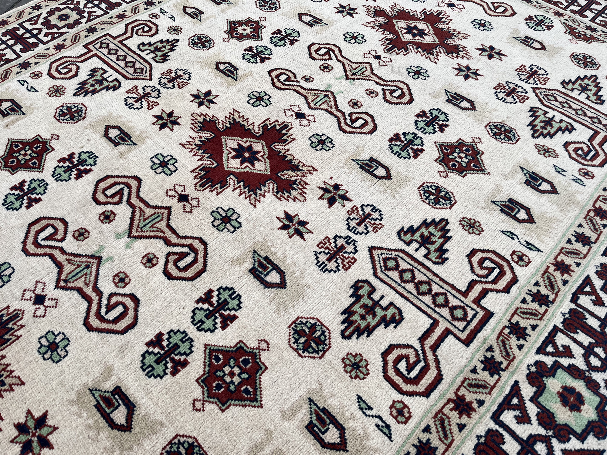 Oferuję Państwu unikatowy, luksusowy dywan Afghan Kazak, ręcznie tkany przez mistrzów rzemiosła.